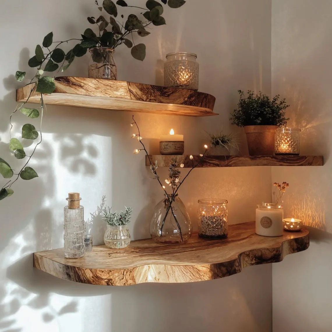 These handmade shelves bring honest materials and tidy function to daily routines—warm, practical, and easy to style.